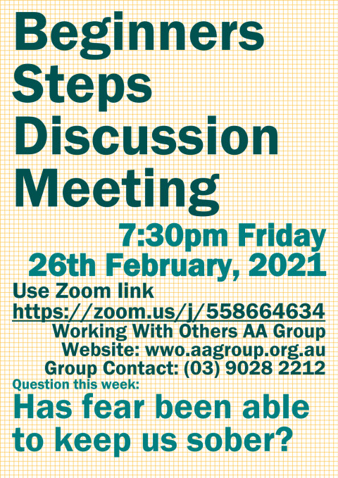 This is a Beginners Steps meeting where newcomers can find out more about AA's 12 Step program.